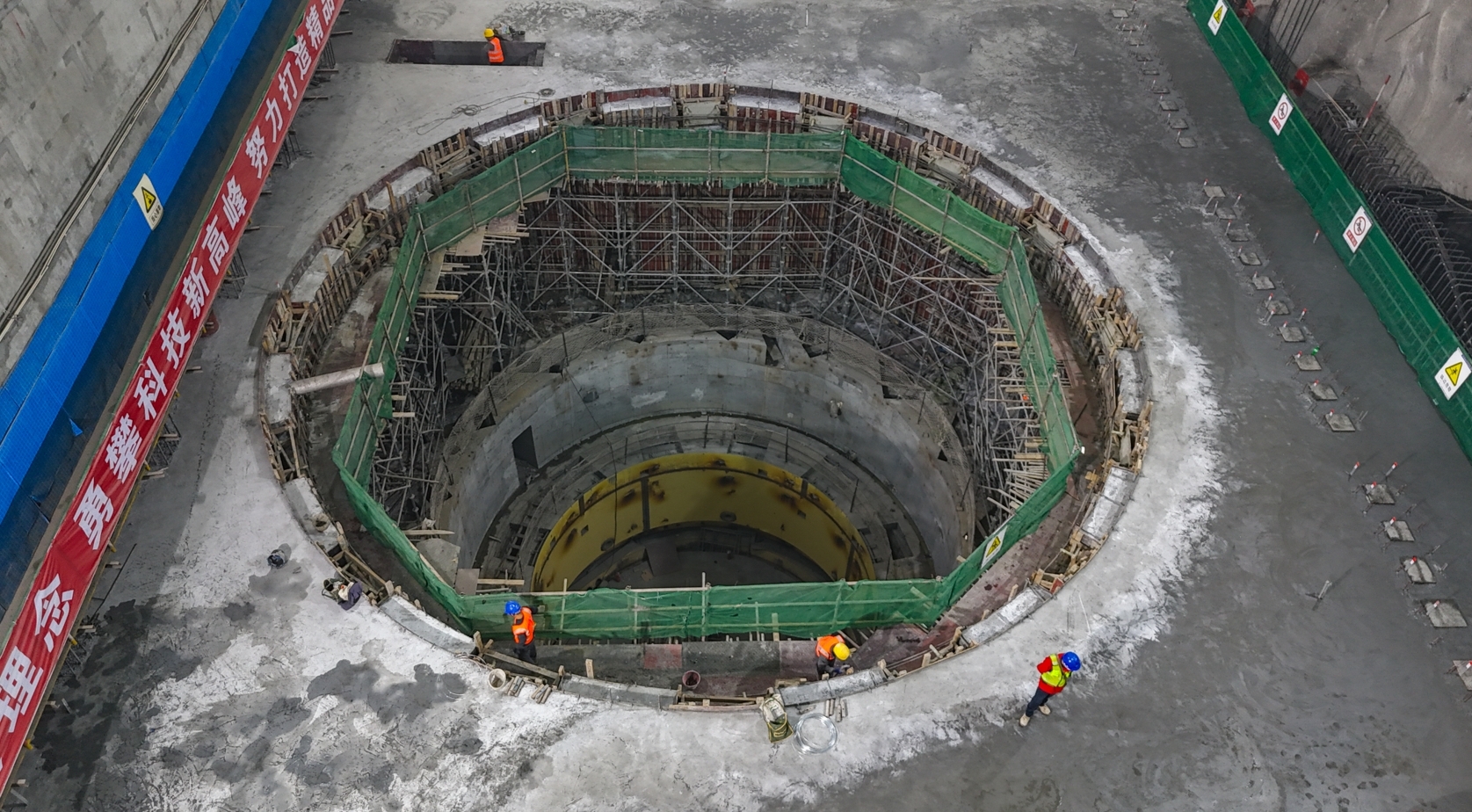 面對高地應力、高埋深等復雜地質條件,項目部通過“高寒高海拔大體積水工混凝土施工關鍵技術研究與工程示范”科研項目系列研究,有效解決進水塔冬季大體積混凝土施工問題。同時,現場采用了智能溫控、智能灌漿等集成化數字建造技術,攻克了高海拔地區混凝土溫控的世界級難題?,提前完成進水塔封頂、主廠房發電機組交面、出線豎井滑?;炷翝仓瓿傻裙濣c目標。